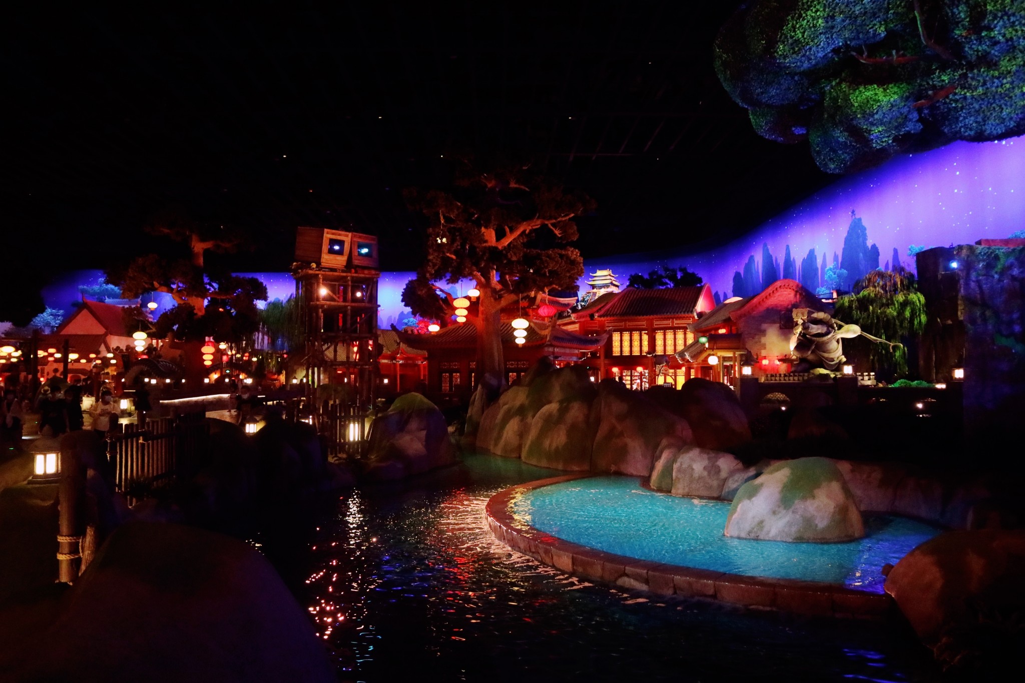 園區(qū)真的很大,小編也是逛得流連忘返。而且看著園內(nèi)各種各樣的場景,想起當初還是一疊一疊的技術(shù)文稿,經(jīng)過我們的漢化,由建筑師打造成了如今萬眾期待的樂園,小編心里也很自豪。不知不覺夜幕降臨了,園內(nèi)的燈光很漂亮。