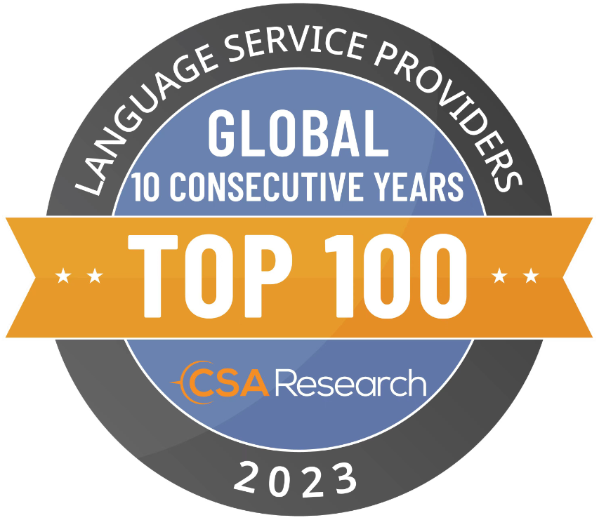 近日,國際知名的語言咨詢研究公司CSA Research發(fā)布《The Top 100 Language Service Providers: 2023》(2023年全球百強語言服務商)榜單。新宇智慧被評為全球百強語言服務提供商之一,排名第55位,并獲得連續(xù)10年全球百強語言服務商榮譽徽章。