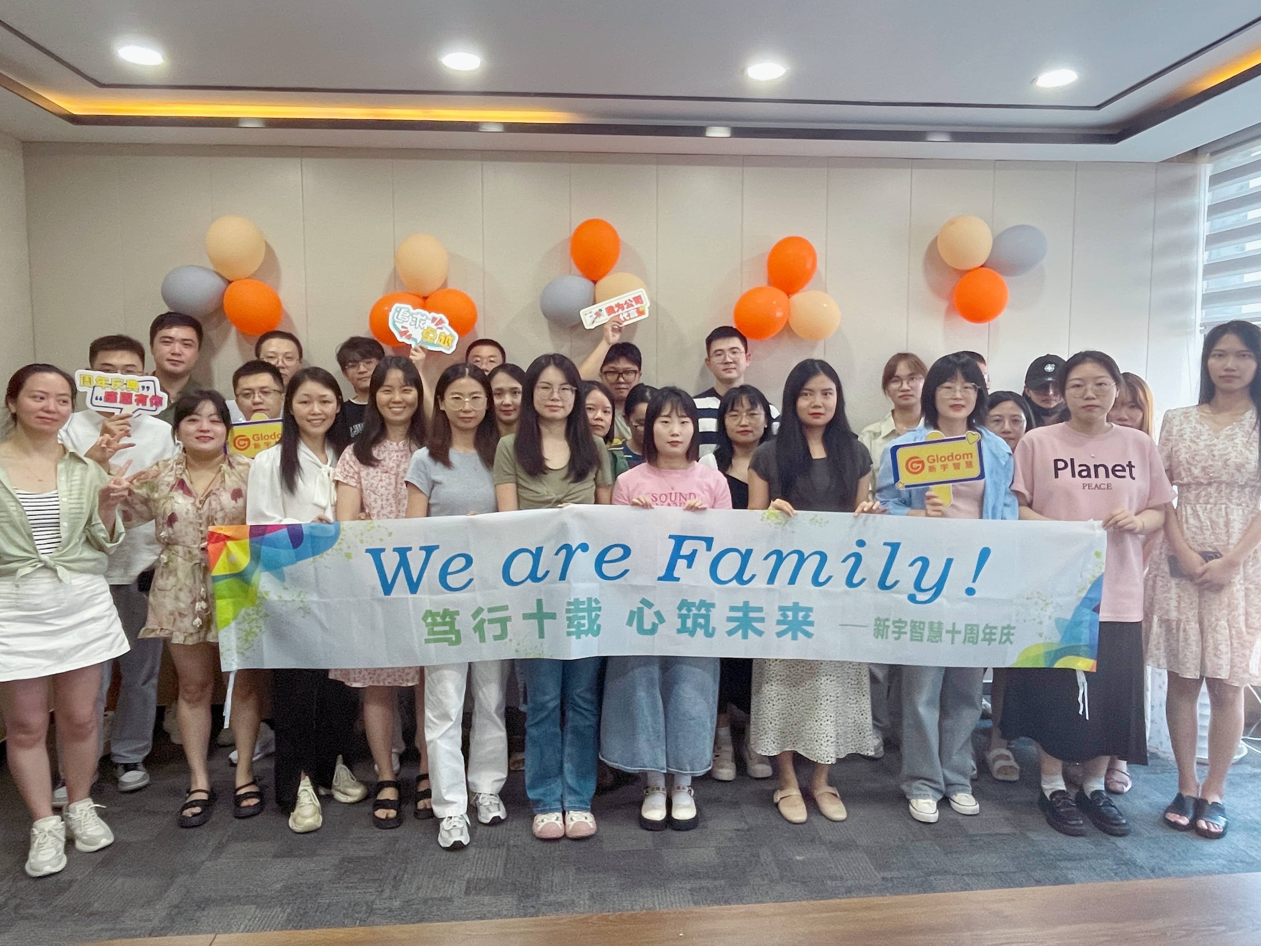 慶典在大家的歡聲笑語中達(dá)到了高潮。全體成員齊聚一堂,留下了珍貴的合影留念。面對(duì)鏡頭,大家齊聲高呼“篤行十載,心筑未來,We are Family”的口號(hào),這不僅是對(duì)新宇智慧過去十年取得成績(jī)的總結(jié)與致敬,更是對(duì)未來無限可能的期許與承諾。在這個(gè)充滿愛與夢(mèng)想的時(shí)刻,新宇智慧人攜手并進(jìn),共同邁向更加輝煌燦爛的明天!