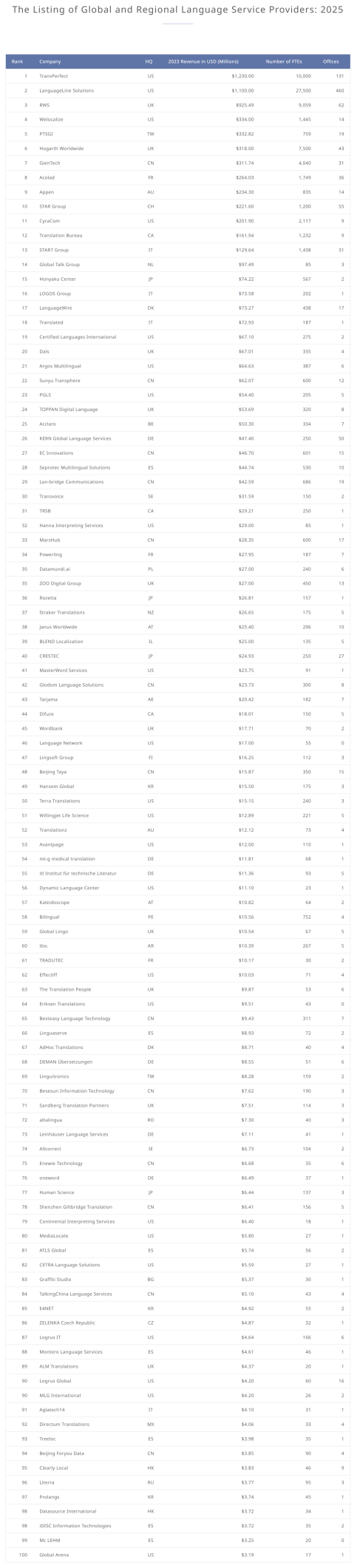 CSA’s annual rankings are a respected benchmark for evaluating the overall performance of language service providers worldwide. With a reputation for rigorous methodology and deep market insight, the rankings reflect excellence across areas such as service quality, technological innovation, client satisfaction, and market reach. Glodom’s placement on this list highlights our ongoing progress and outstanding results in a highly competitive global market.
