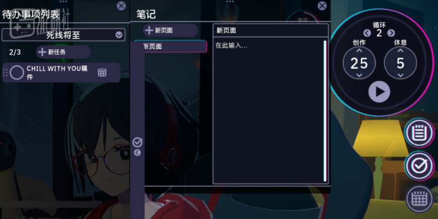 Most productivity applications revolve around the “Pomodoro Technique,” using timed intervals to balance focus and rest. Many similar games build on this by offering gameplay mechanics such as earning in-game currency during focus periods to purchase virtual furniture or decorations.Chill with You: Lo?Fi Story, however, takes a different approach: it transforms focused work into interactive moments with Satone. Many players keep the game on a secondary screen, glancing at it during study breaks to feel as if she is genuinely sitting beside them. This mirrors the modern “study buddy” culture — having someone nearby makes it easier to get into the flow.