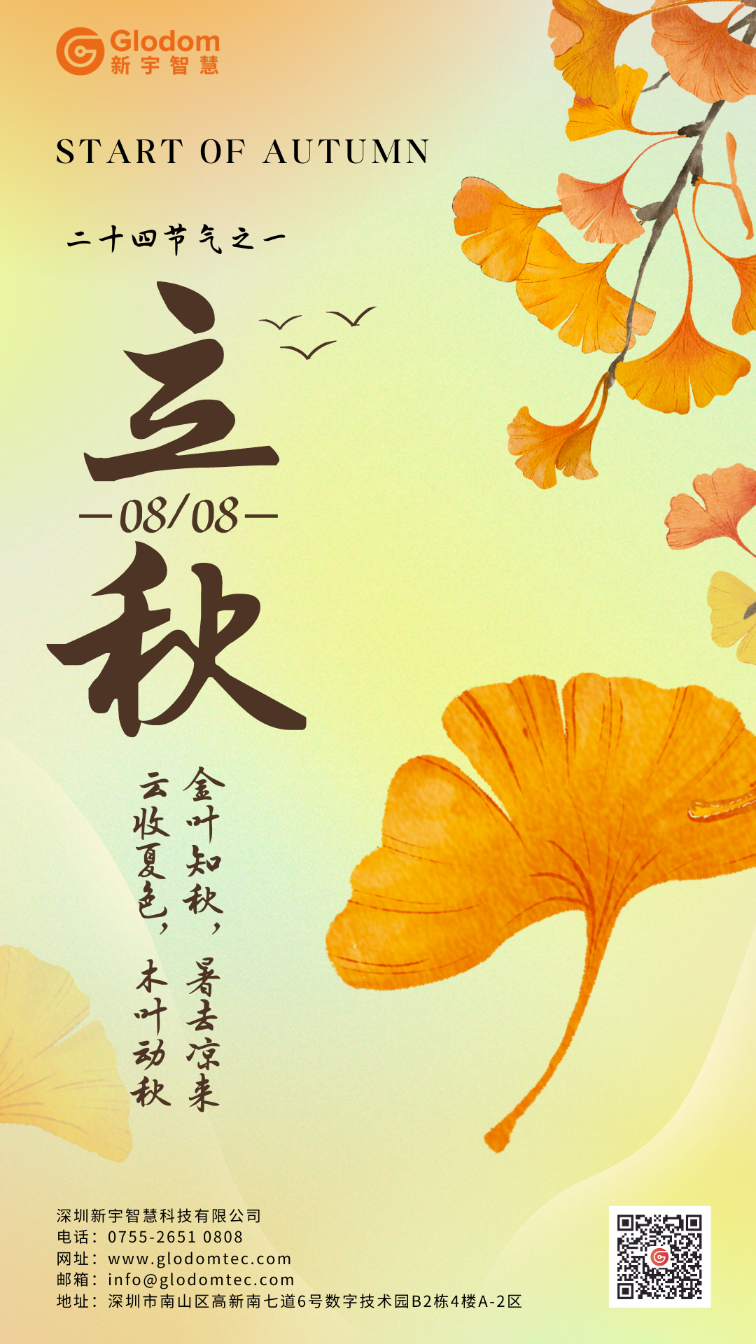 立秋,二十四節(jié)氣中第13個節(jié)氣,秋季的第一個節(jié)氣;斗指西南,太陽達黃經(jīng)135°,于每年公歷8月7或8日交節(jié)。立秋是陽氣漸收,陰氣漸長,由陽盛逐漸轉(zhuǎn)變?yōu)殛幨⒌霓D(zhuǎn)折。